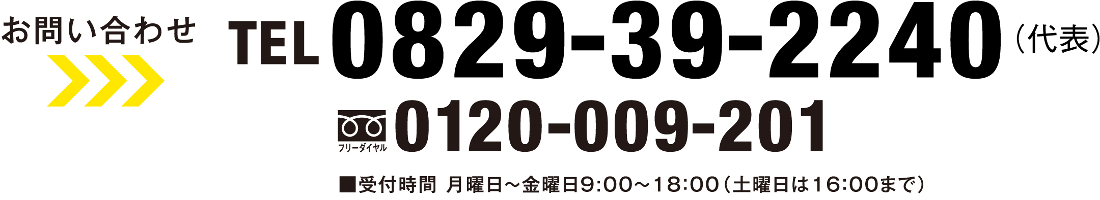 TEL0829-39-2240■受付時間 月曜日〜金曜日8:30〜18:00(土曜日は16:00まで)